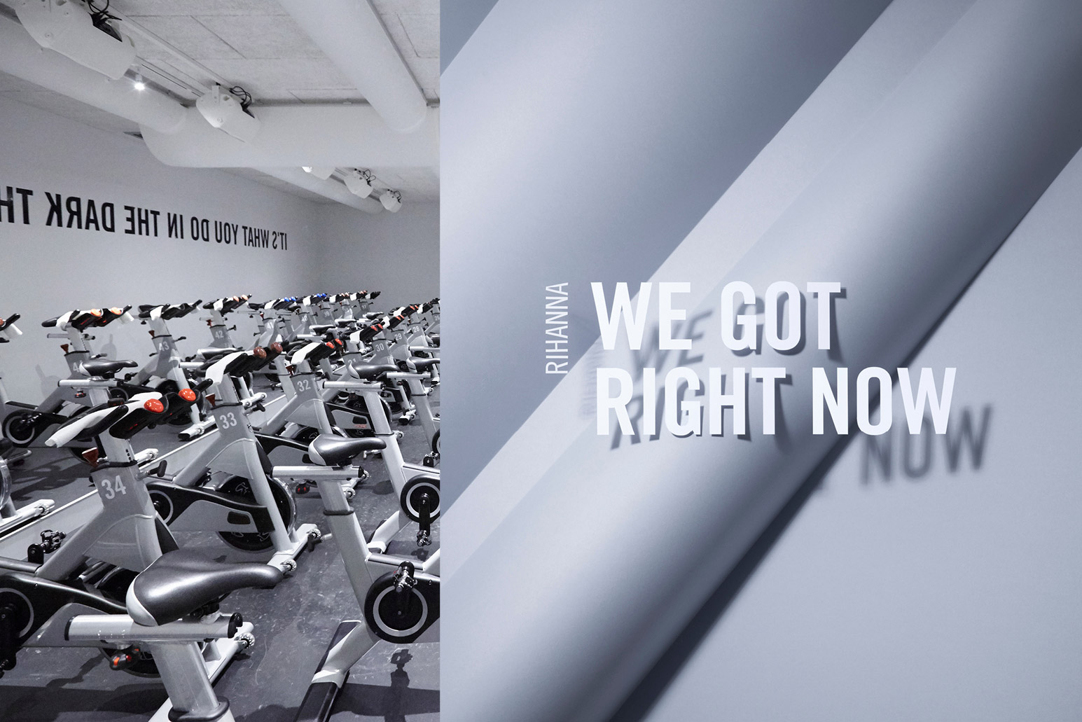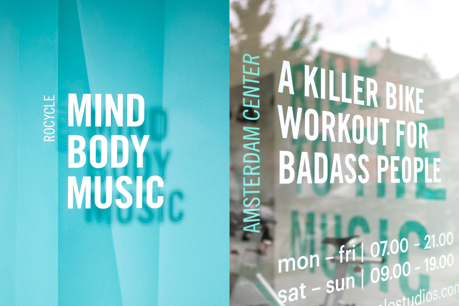 We maken in het pand en op de website gebruik van quotes uit songteksten die je vaak hoort tijdens een sportklas even als kreten van de sportinstructeur om je te motiveren. De quotes die door het pand hangen, gebruikt Rocycle vaak voor hun social media. Rocycle doet zelf haar doordeweekse social media en heeft daarvoor van ons handige formats gekregen. Zijn er campagnes, dan bouwen wij deze op voor Rocycle. Het is een prettige wisselwerking.