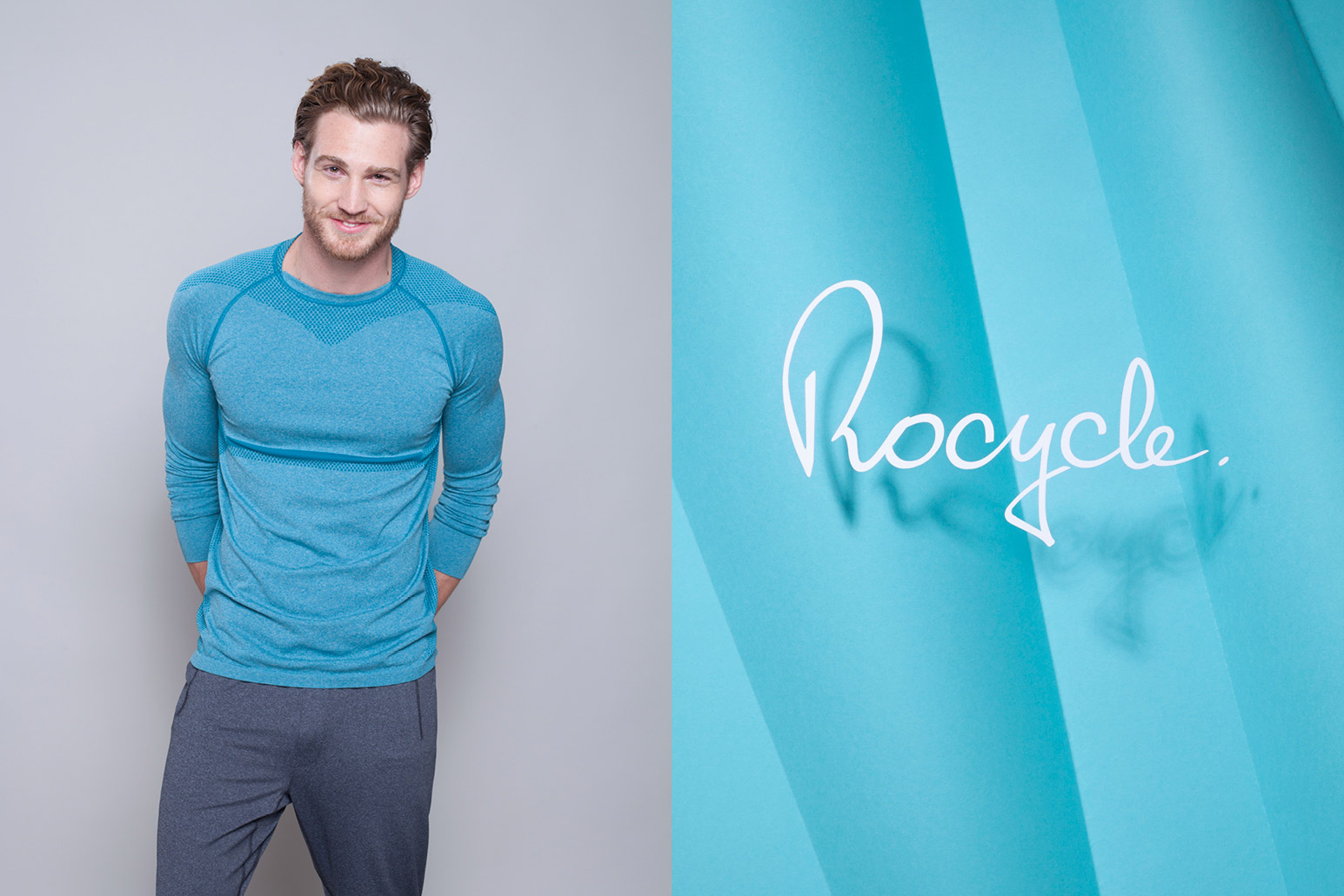 "Het logo had ik zelf al geschetst, op basis van mijn handtekening. Wat ik fijn vond, was dat het niet overboord werd gegooid, maar werd gebruikt als startpunt voor het persoonlijke verhaal van Rocycle. De eenvoud valt op, het onderscheidt ons van andere fitnessmerken."