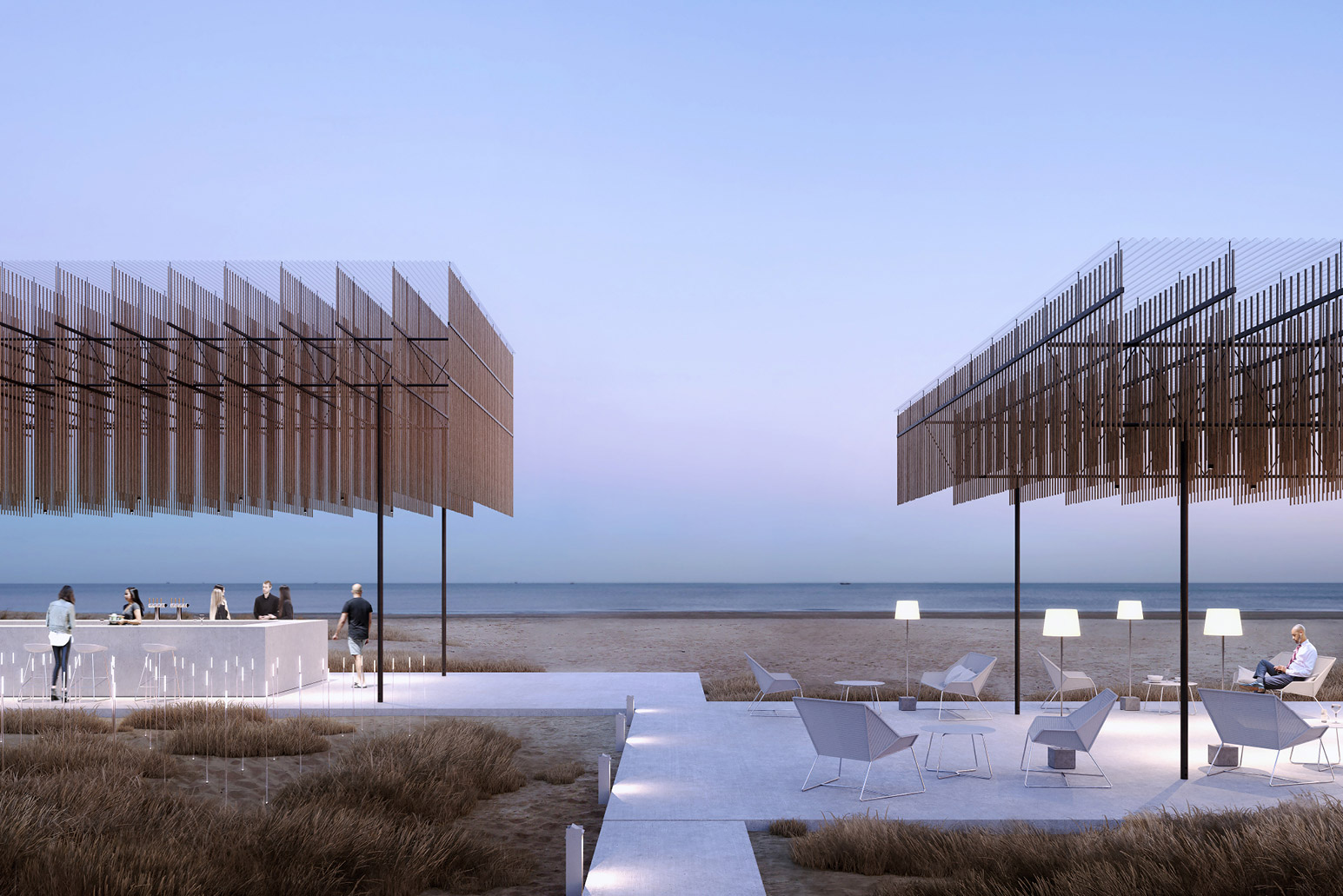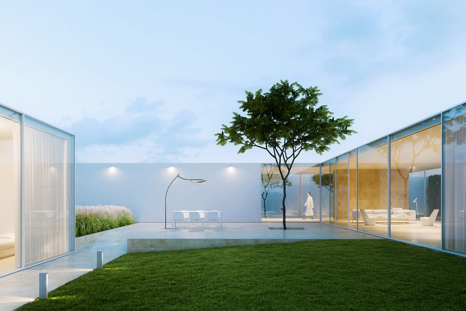 De verschillende 3D sfeerwerelden die we hebben ontwikkeld voor Dexter: hospitality, garden en archictectual lighting.