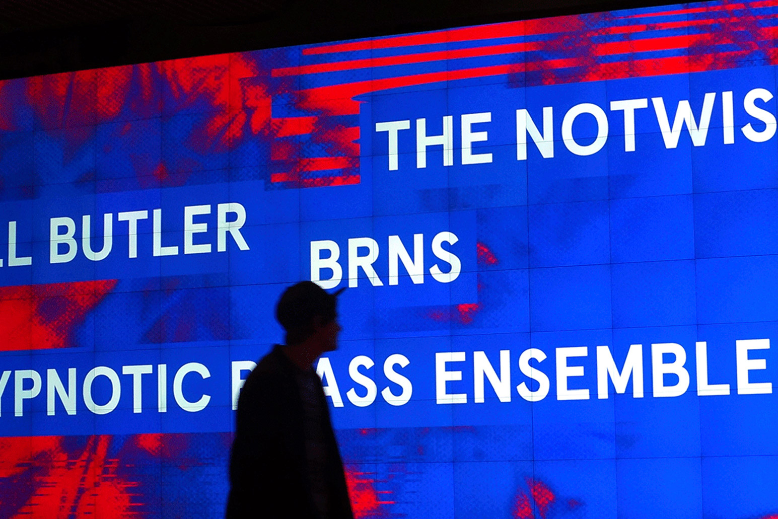 Ook besloten we het afgelopen jaar twee vormtalen te gebruiken. Vóór het bekendmaken van de publiekstrekkende artiesten werkten we in zwartwit. Dit werd een bijzonder een-tweetje met de terugkerende gasten, die steevast een early bird-kaartje kopen. Samen keken we gretig uit naar de verdere inkleuring van het festival. Het werkte goed, ook in de strategie: de verkoop van de kaarten verliep soepeler. Het festival was dit jaar uitverkocht. We adopteren deze campagnemethode als nieuwe strategie voor volgend jaar.