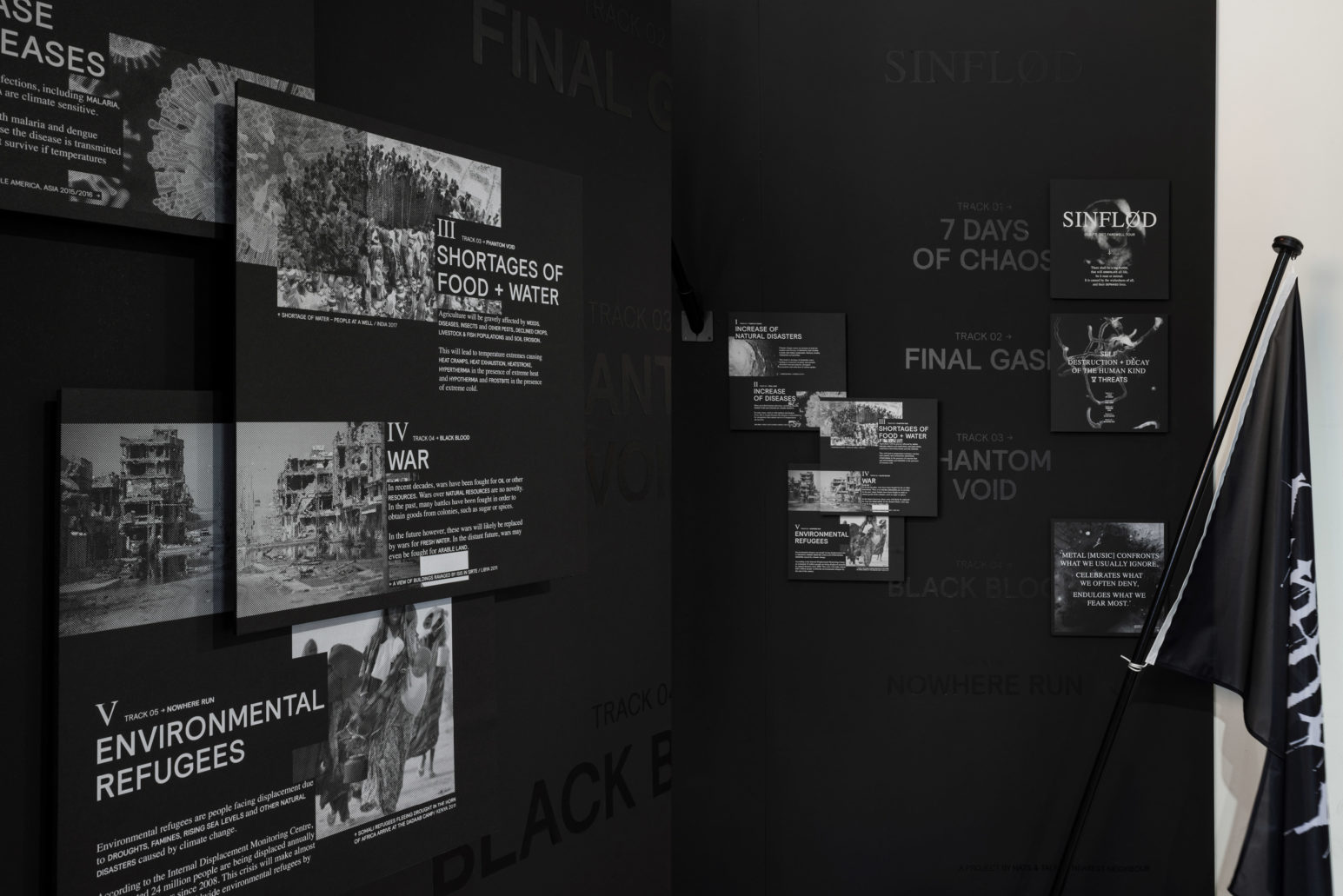 De keuze om de beeldtaal van de metal-scene in te zetten voor dit project versterkt de dwingende en alarmerende laag in onze boodschap. De oorsprong en semiotiek van de metal-scene bekrachtigd de kritische boodschap van Sinflød: de zelfvernietiging en ondergang van de huidige beschaving is ingezet en we kunnen niet meer terug.
